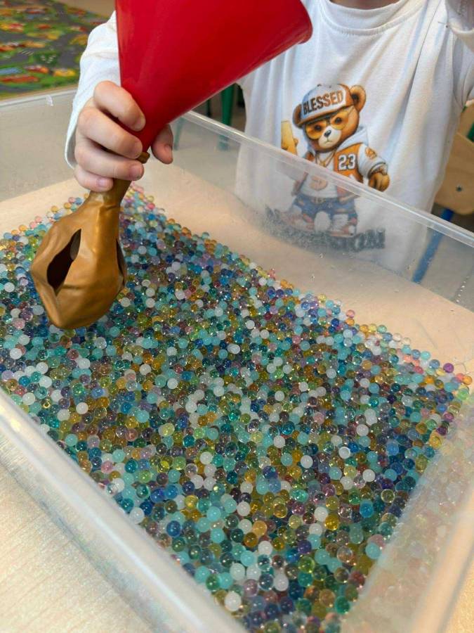 Przesypywanie i dotykanie kulek dostarczyło dzieciom różnorodnych wrażeń dotykowych.